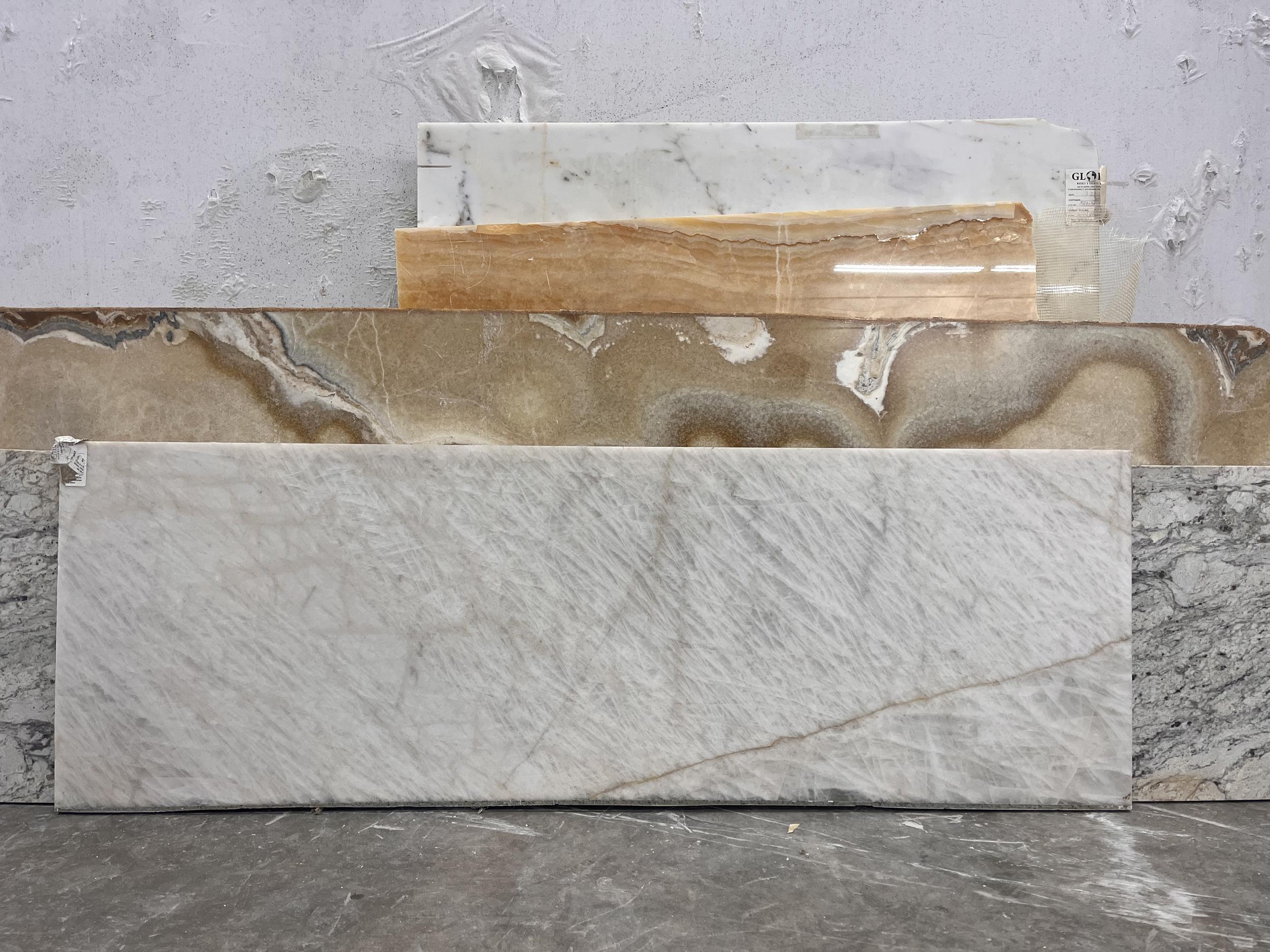The photos below are examples only — all imported natural stones vary in color, shade, and veining. We recommend selecting slabs in person before purchase.